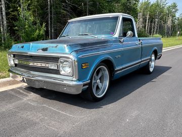 1970 Chevrolet C10 Short Box with all the fixings! This truck has a carbureted LS3 backed up by a 4L70 transmission purchased new from GM and has less than 1000 KMS on it. The previous owner reports 3:55 gears. Wilwood disc brakes on all 4 corners and upgraded suspension puts you in C-10 short box heaven. The patina is perfectly done covered in a beautiful satin clear to give you the You can't build this truck for double the money!